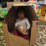 She loves her little doll which she has with her in the cardboard house. Its the Berenguer Asian baby, and it looks exactly like Parker. He’s not allowed to wear any clothes though, I’m not sure why.