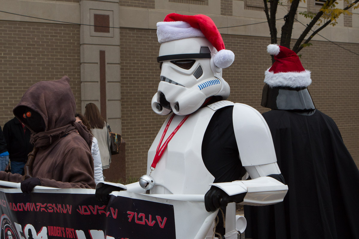 The real highlight was at the end of the parade when we happened across a float of Star Wars characters. We got some pictures with Darth Vader, Skylar shook his hand (which is quite the feat considering how both kids were run like hell whenever they saw an oversized Disney character a couple years ago), and the Emperor photo bombed us.