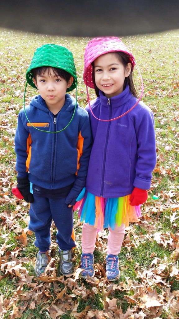 Not sure what was going on here. It wasn’t even Easter yet. Who needs toys when they are buckets to wear on your head.