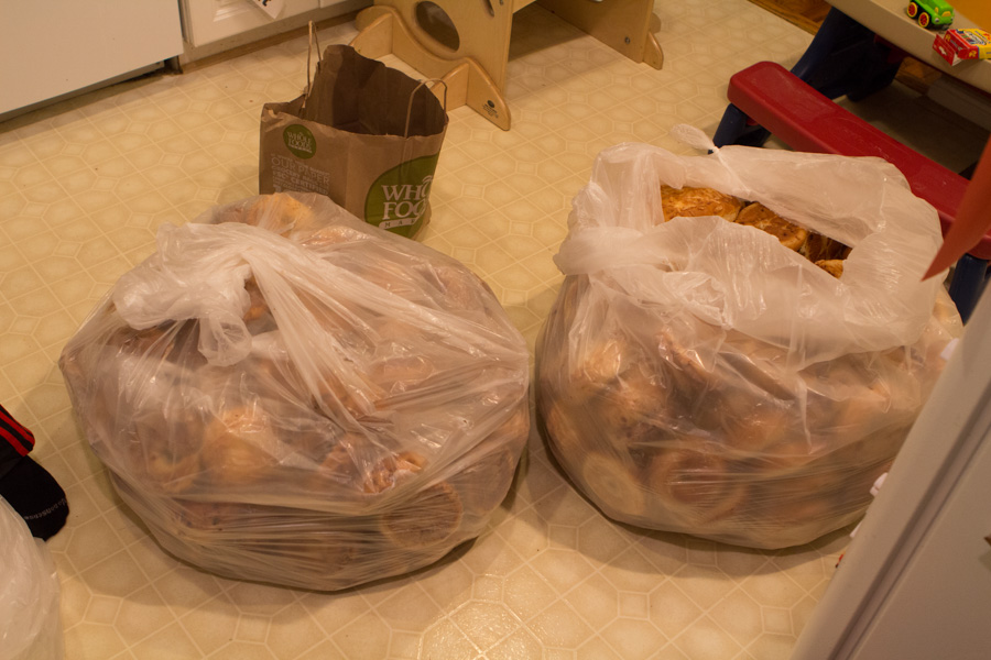Thanksgiving night Susan went out shopping for deals and she came home with…bread. Lots and lots and lots of bread. Let me give you the exact figure: three 60 gallon trashbags of bread.