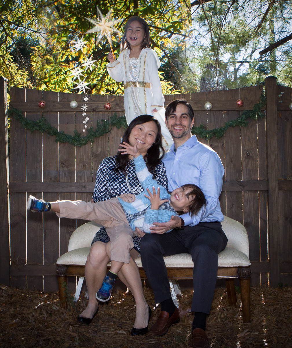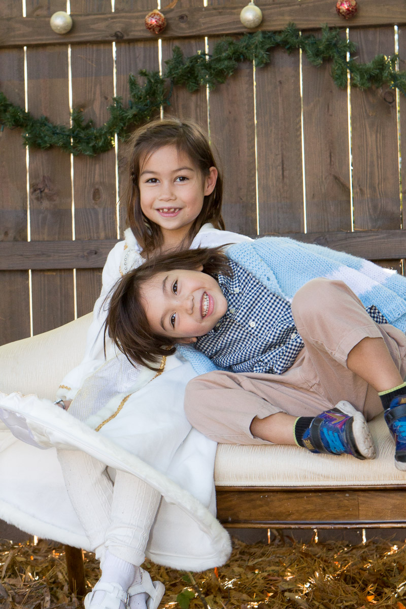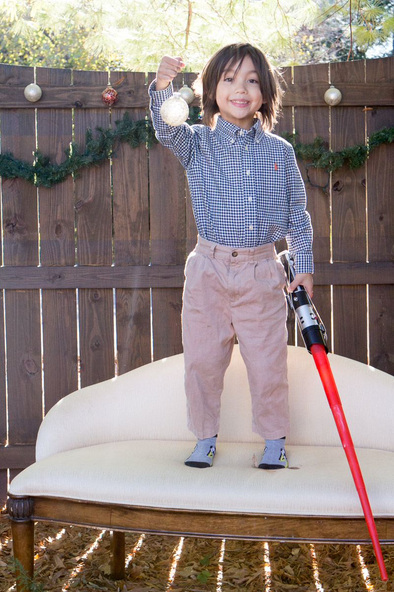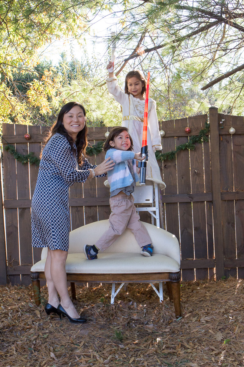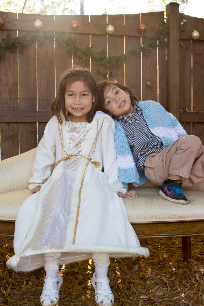 It’s that time of year again! I was inspired by Susan’s idea to dress Skylar as an angel. My idea was to hang her from a ladder and have her floating above us waiving a magic wand. I think I got the desired effect: