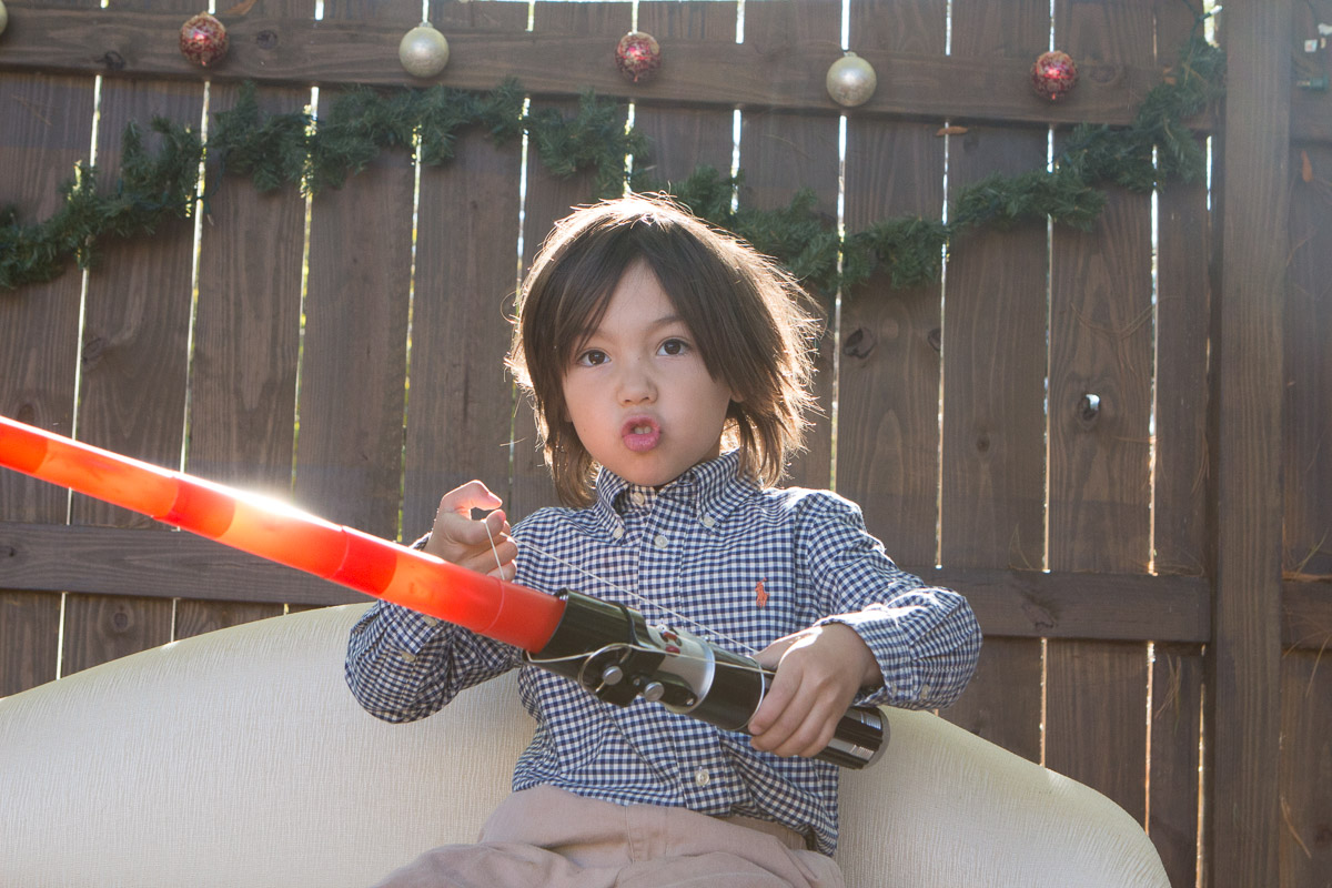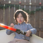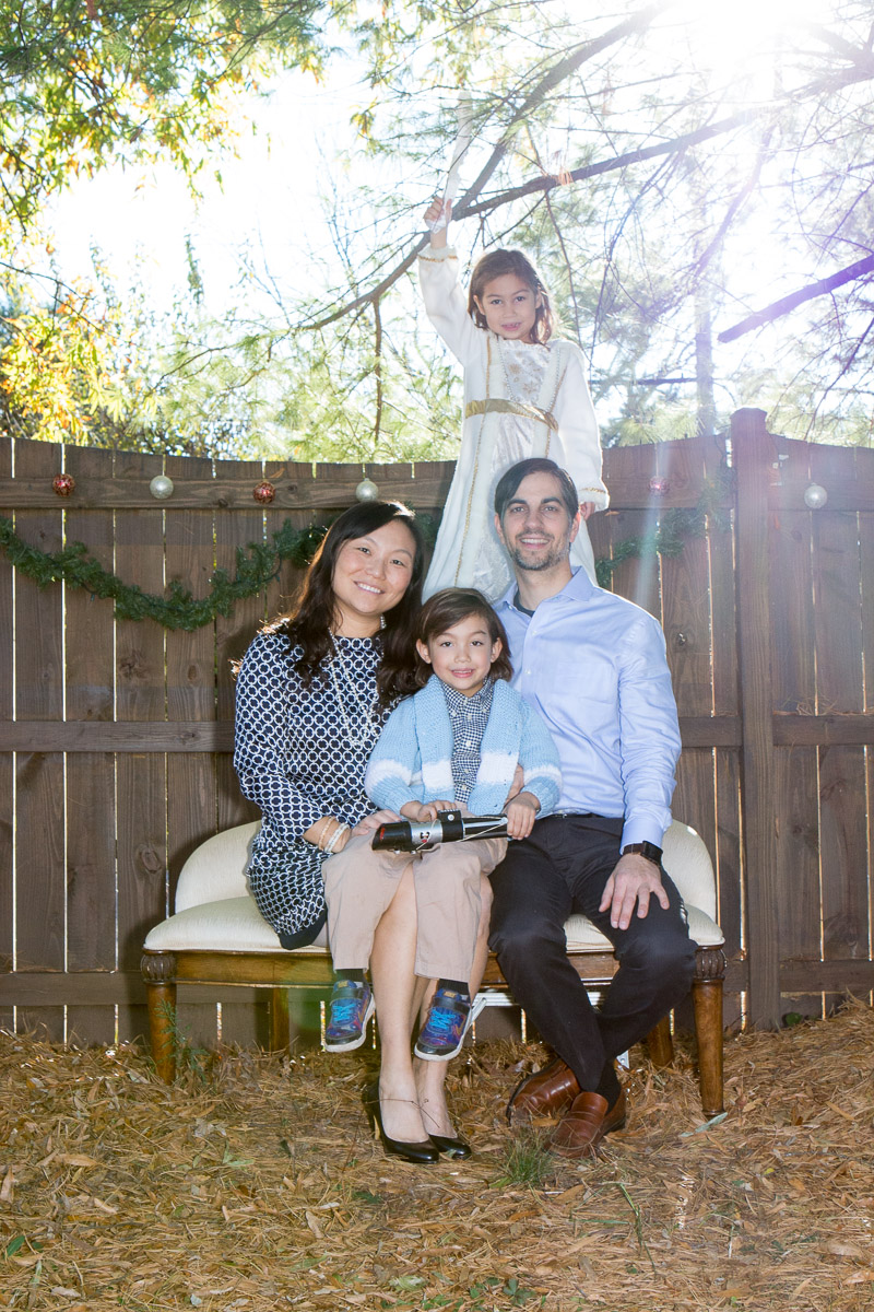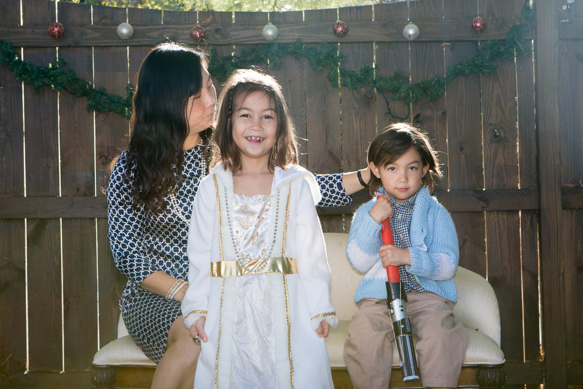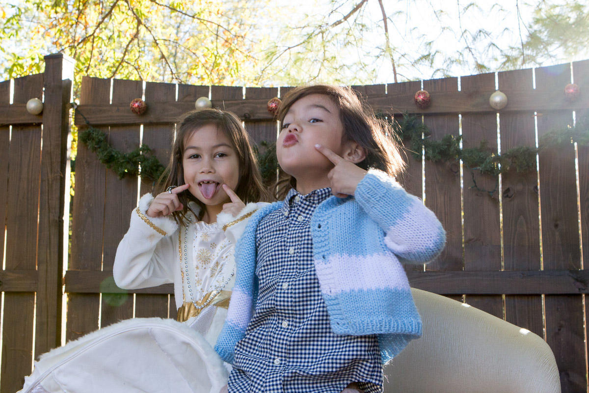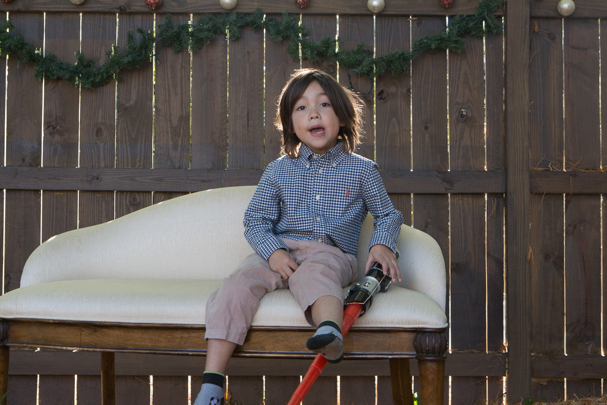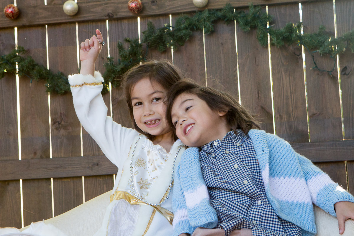 It’s that time of year again! I was inspired by Susan’s idea to dress Skylar as an angel. My idea was to hang her from a ladder and have her floating above us waiving a magic wand. I think I got the desired effect:
