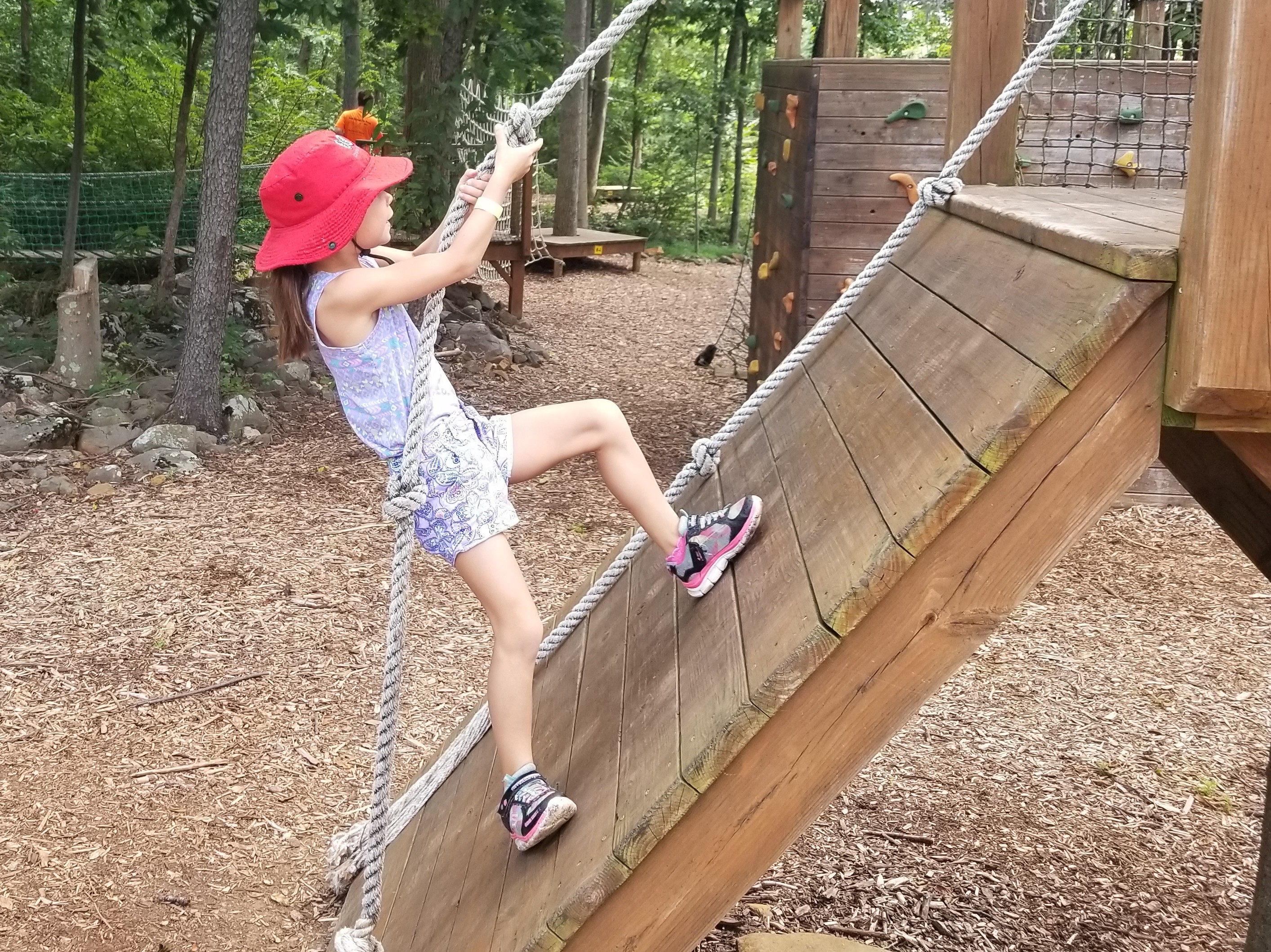 Skylar and I had a daddy day one Friday and we went to RoundTop Mountain for their adventure tour. We ran like rats through a maze, traveled down the mountain in an “OGO” ball filled with icy cold water, zoomed sideways down a water slide, and climbed, climbed, climbed through a multitude of nets, slack lines, climing walls, etc.