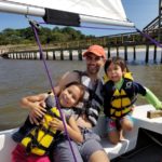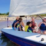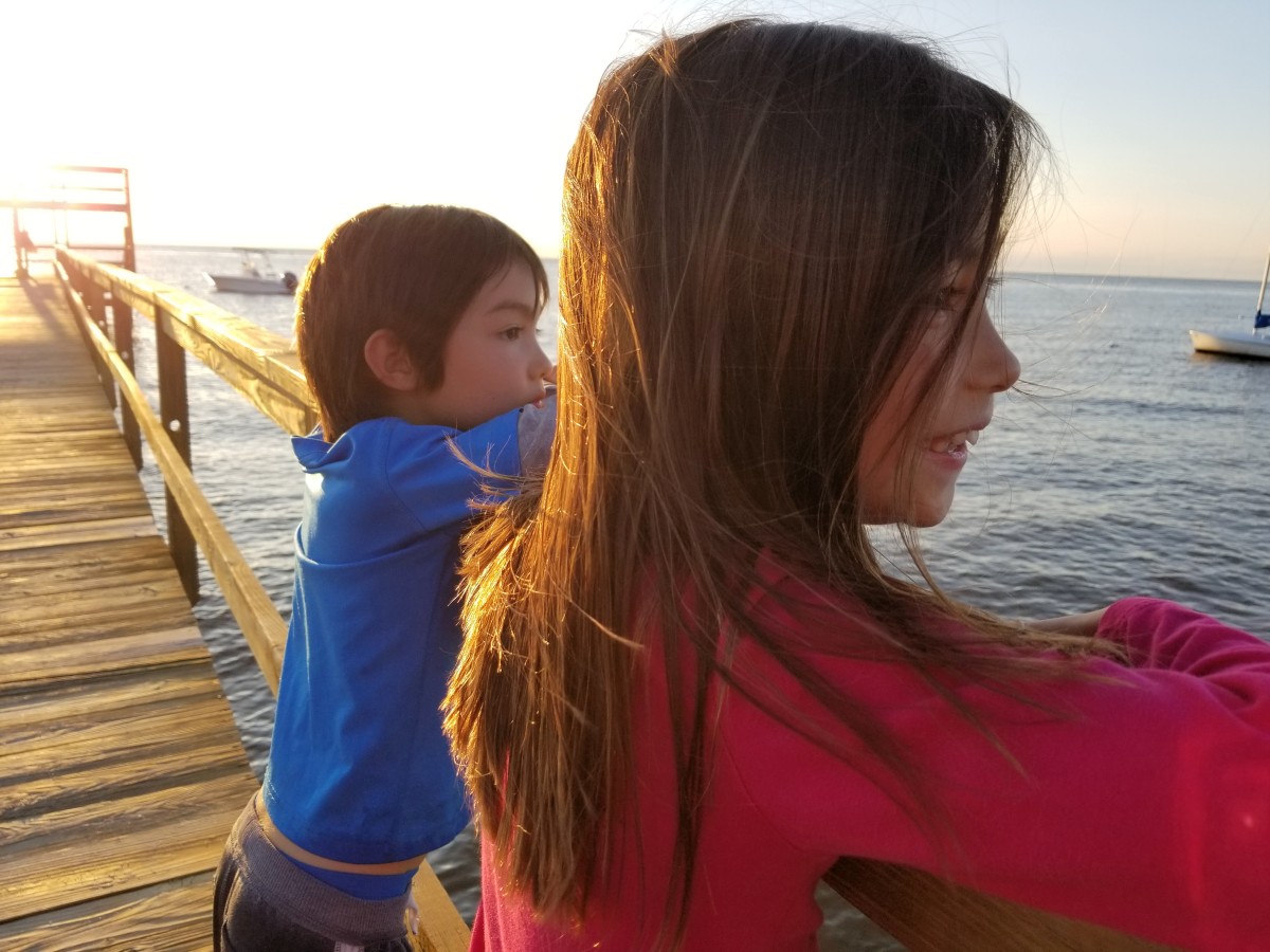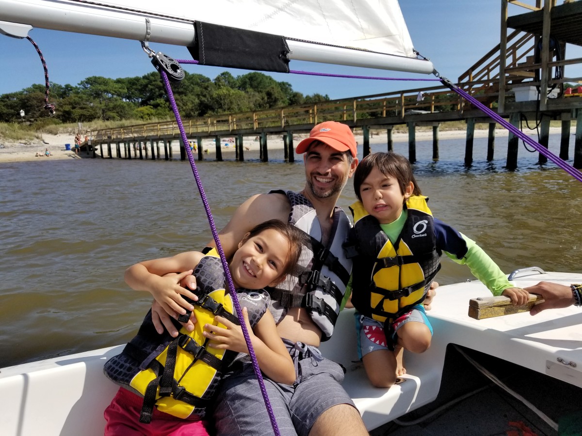 Skylar continued her independence and went up the zip line (over 80 feet high) all by herself while Parker and I were practicing archery! But the best time was at the bay. Sunday, we hit low tide at the perfect point and had a nice breeze to whip up some waves. We kayaked out about 200 feet from shore and found ourselves beached, ankle deep on a sand bar.