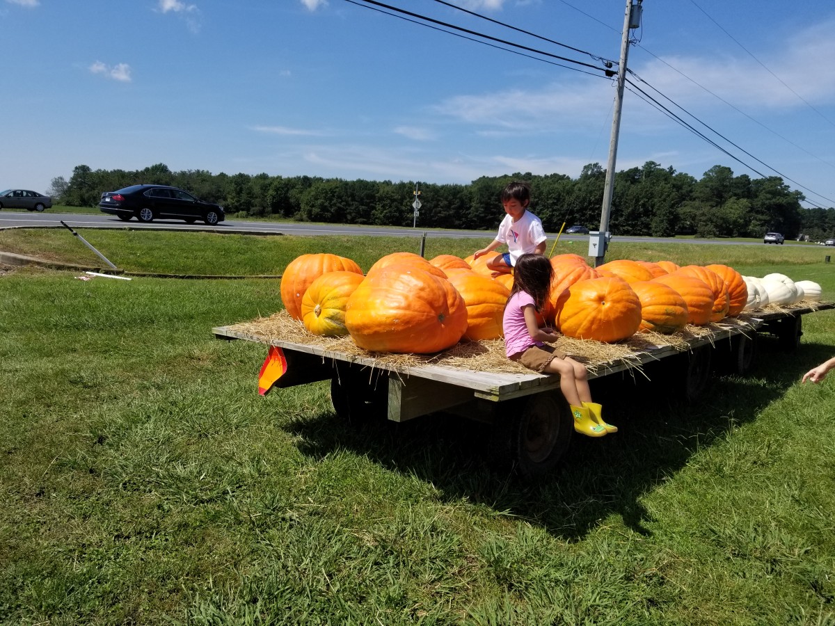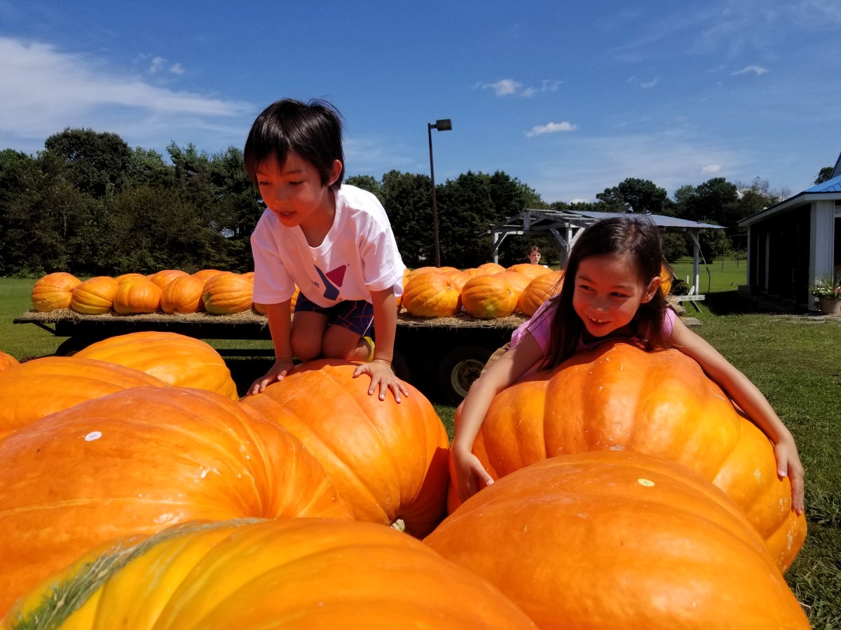 Other families were parked there and the kids had fun fighting the waves. On our way home we stopped by a giant pumpkin farm. What do they feed those things?!?!