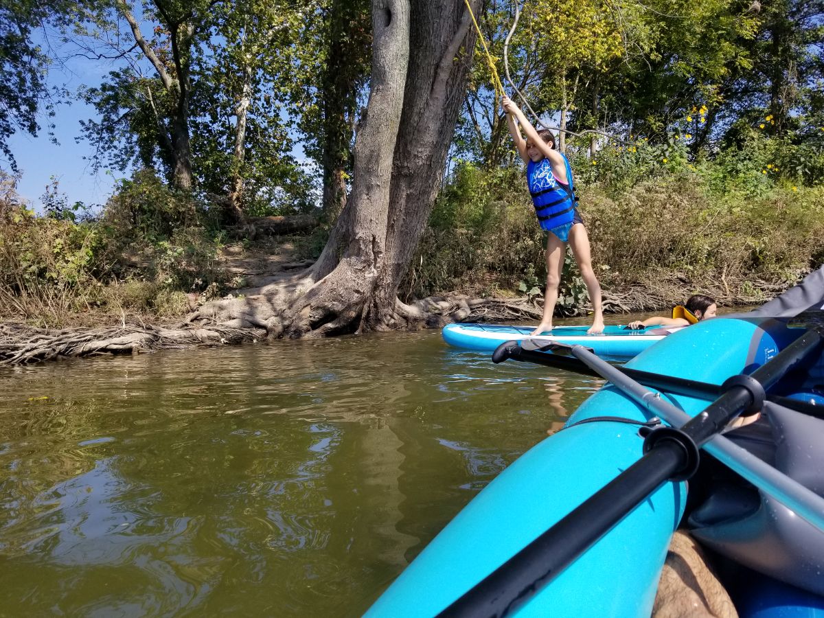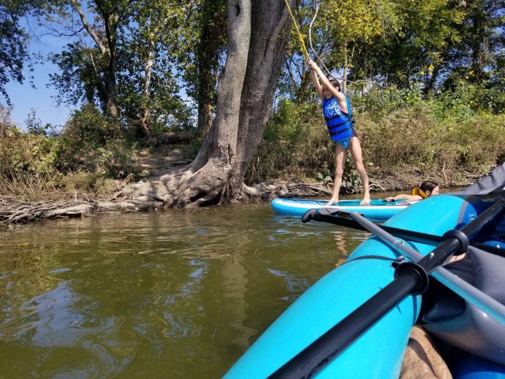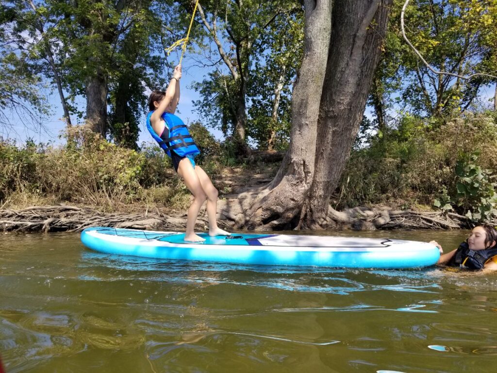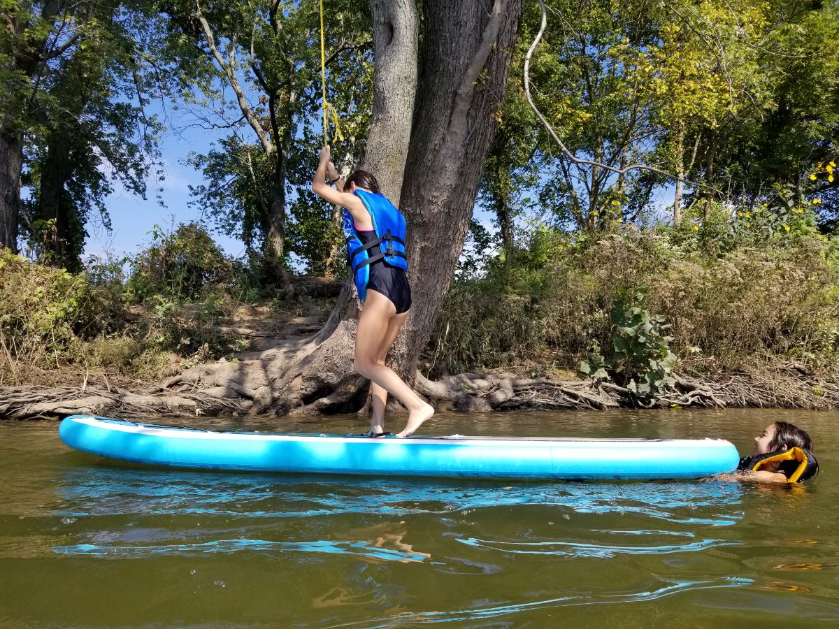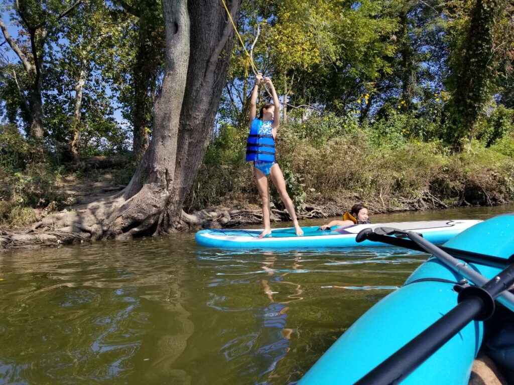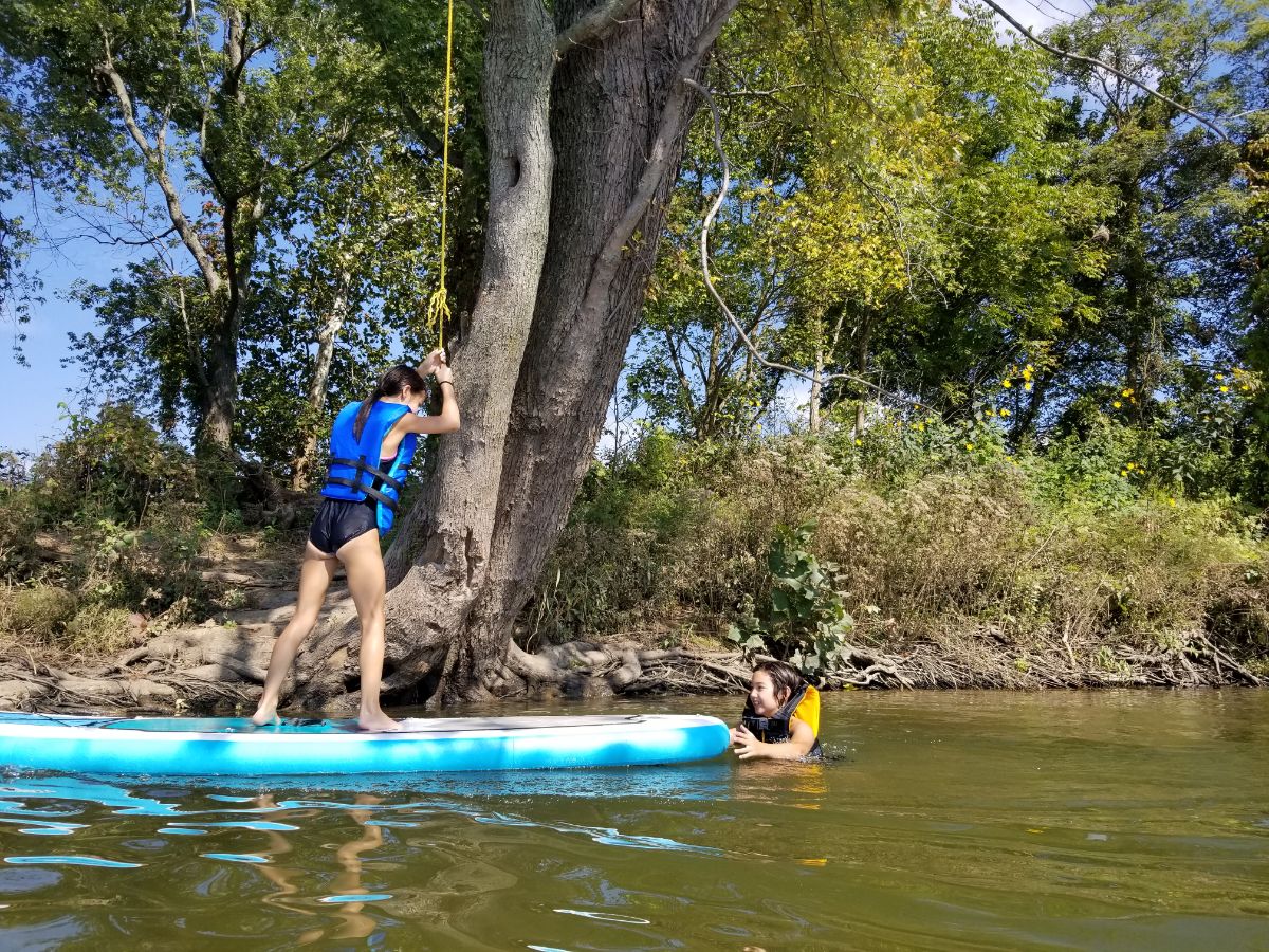 Playing “Water Troll” on the paddle board and rope swing at Algonkian Park
