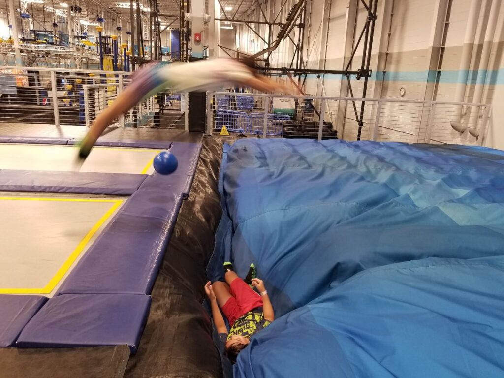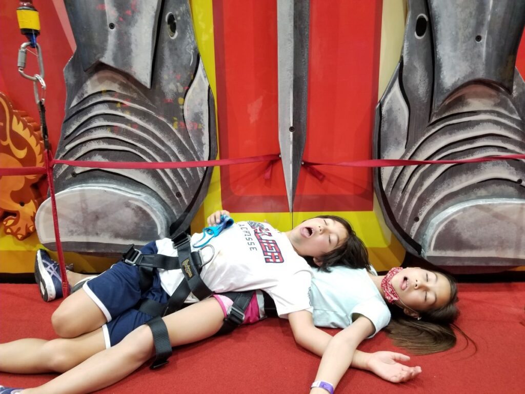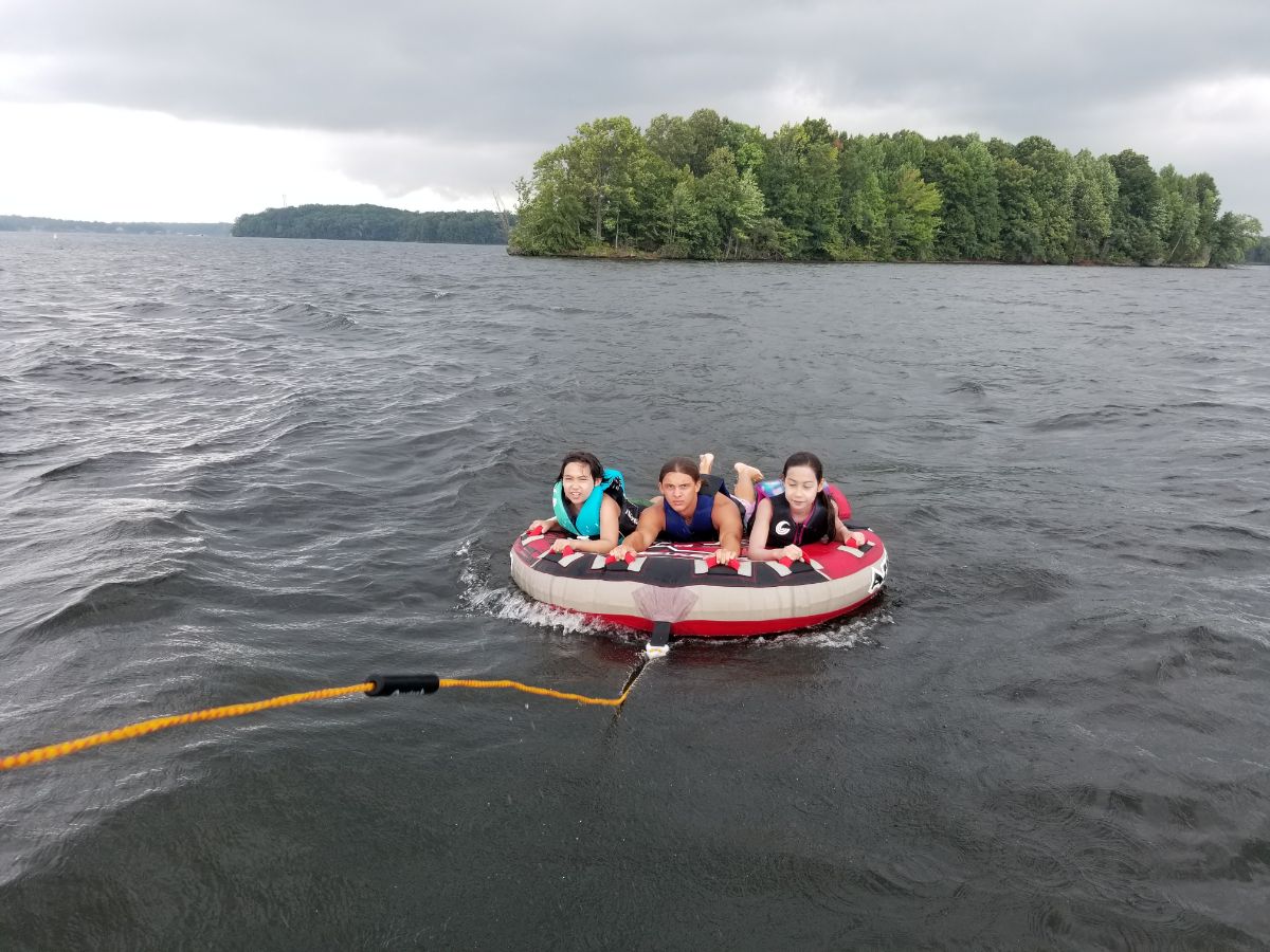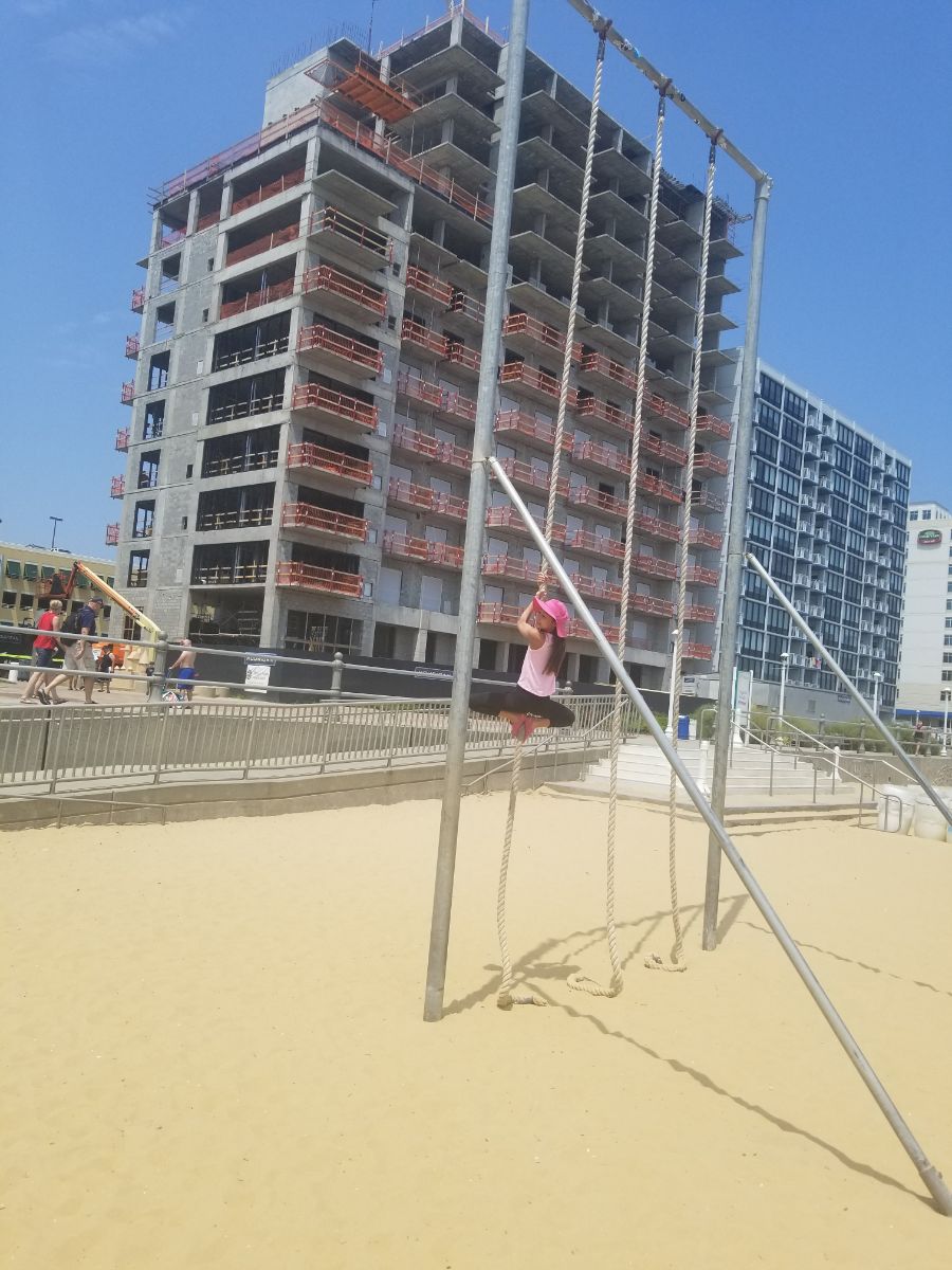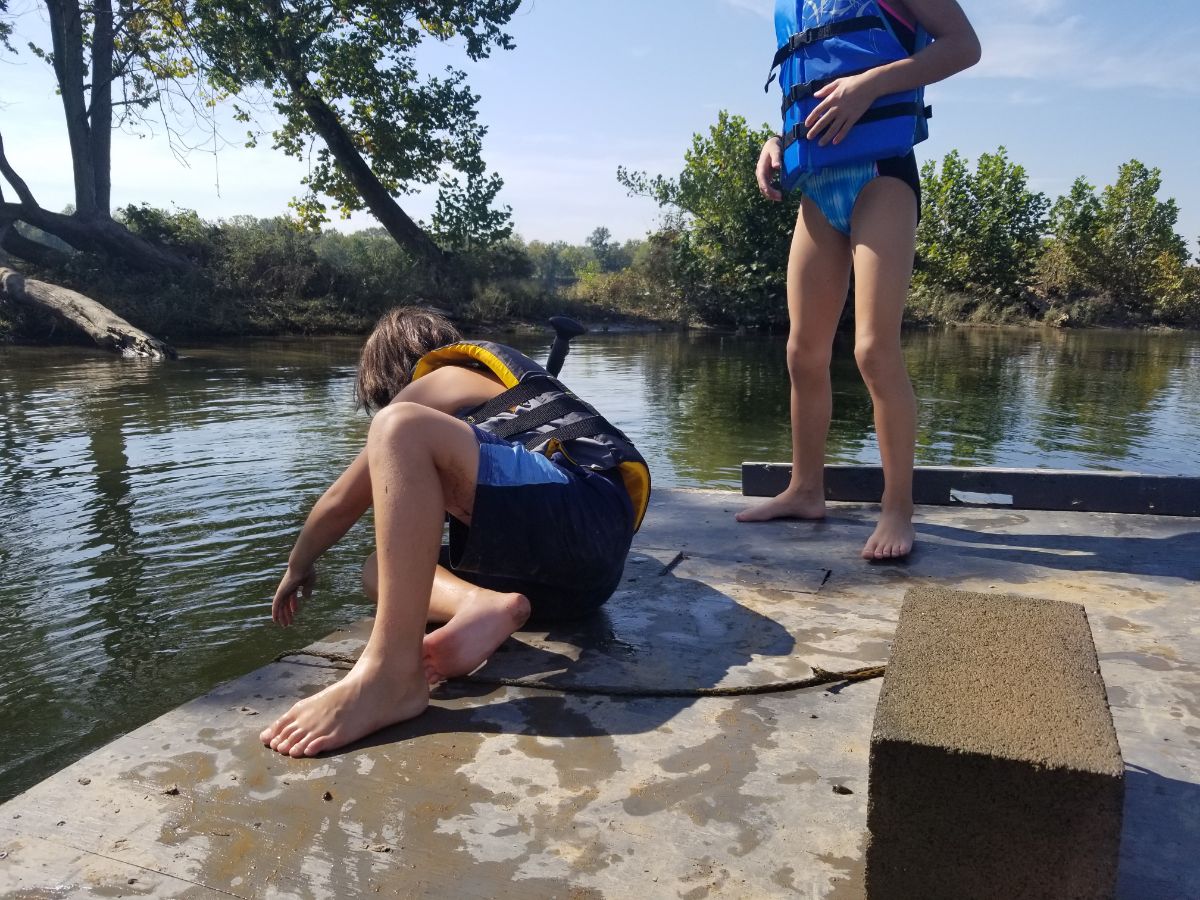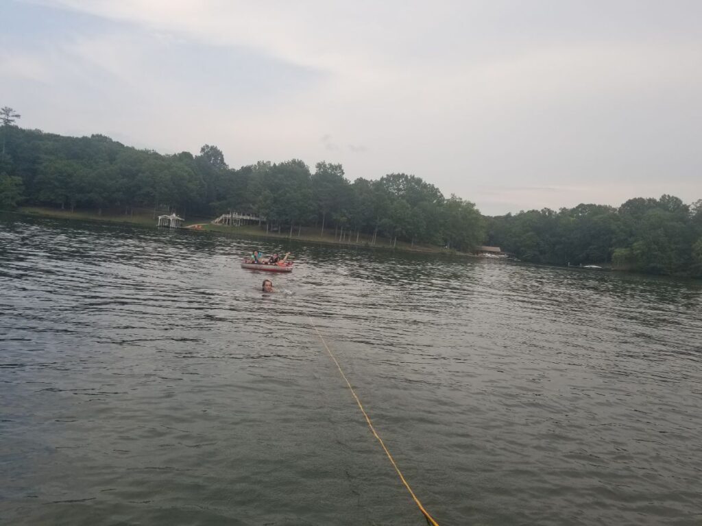 Playing “Water Troll” on the paddle board and rope swing at Algonkian Park