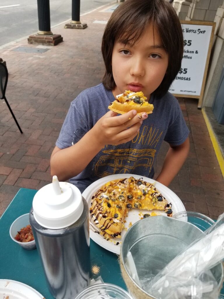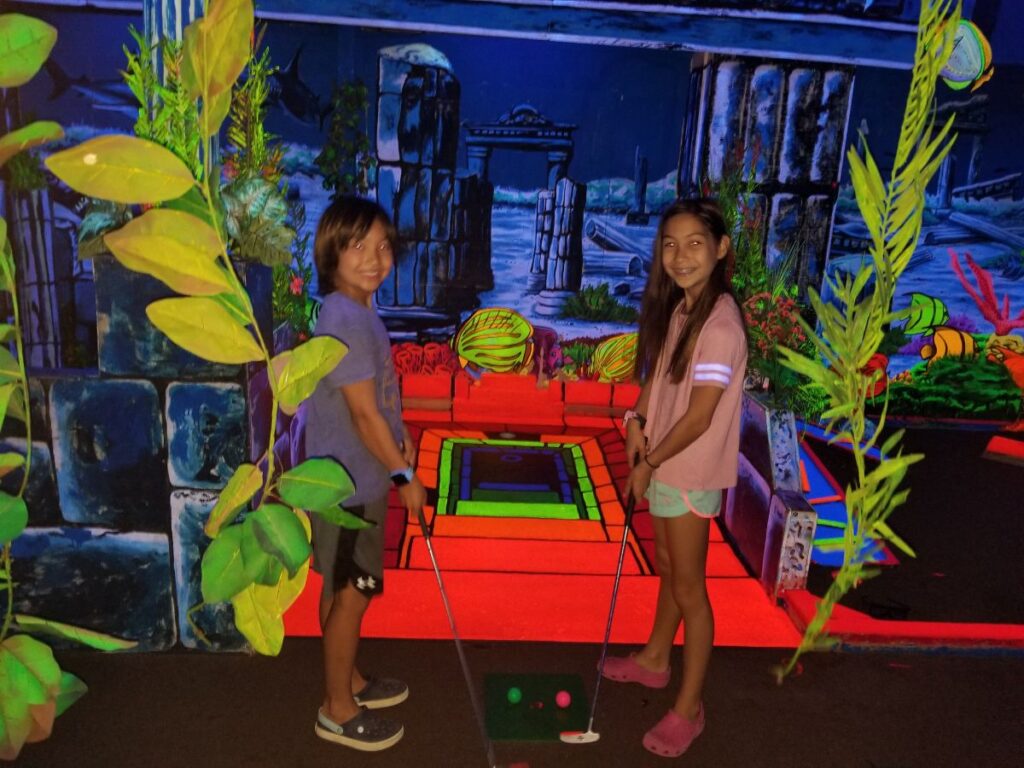 We went out on the boat with Uncle Gillette and Mason the following day and then departed for Virginia Beach. We spent lots of fun time at the ocean, visited a water park, enjoyed breakfast at a place called BadAss coffee – which the kids thought was hilarious, and we concluded our last day with a trip to a black light mini-golf course that we were allowed to play multiple times because apparently no one plays min-golf at 10:30am on a Saturday morning…