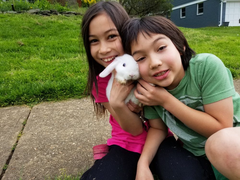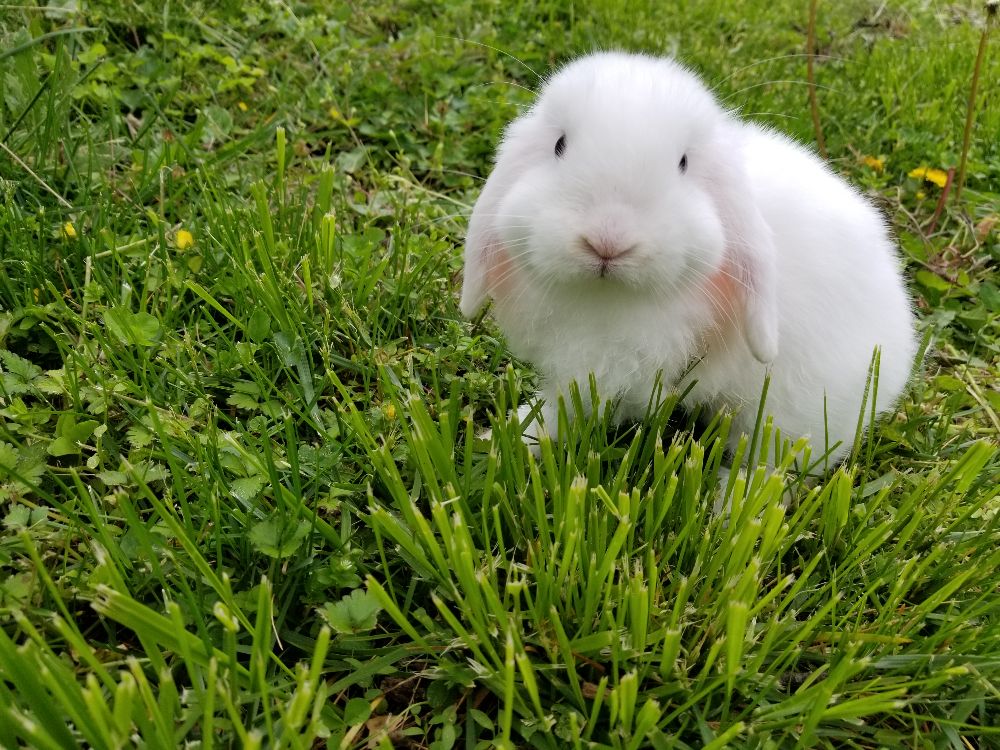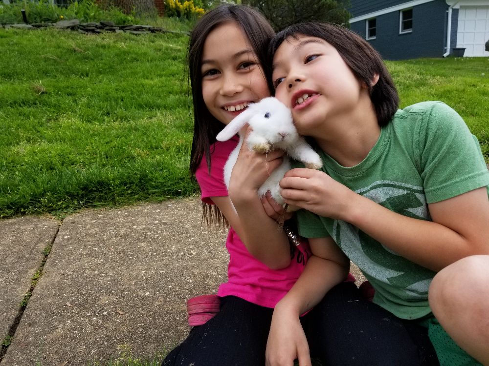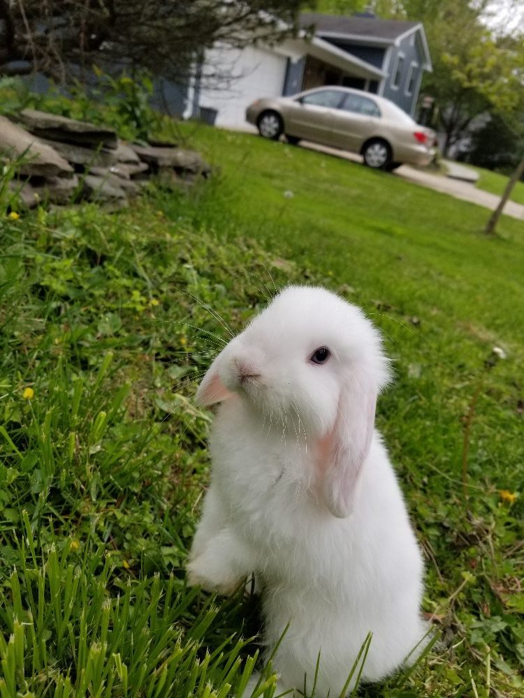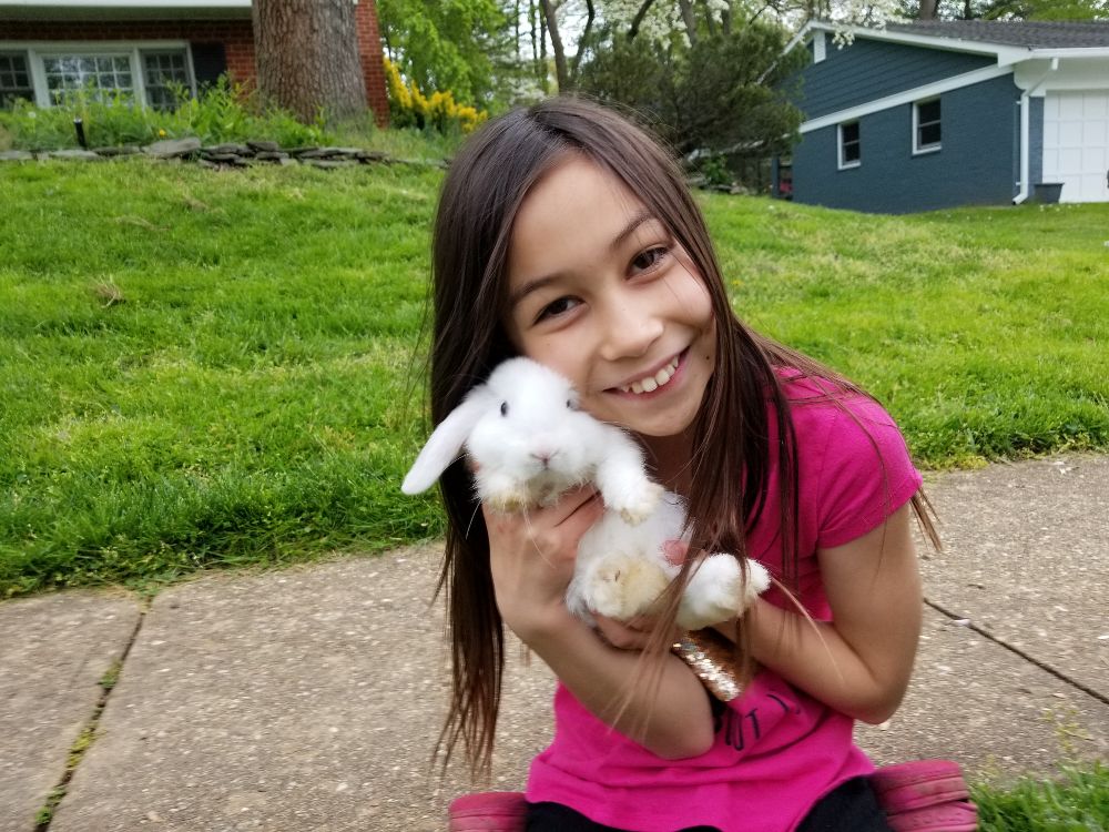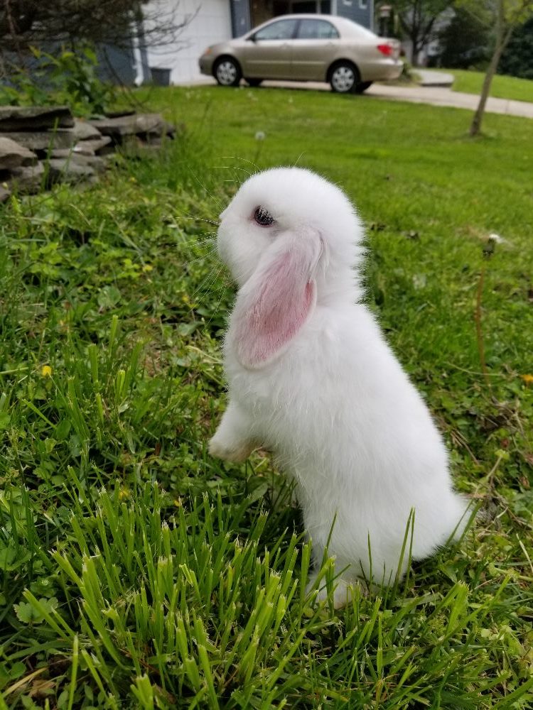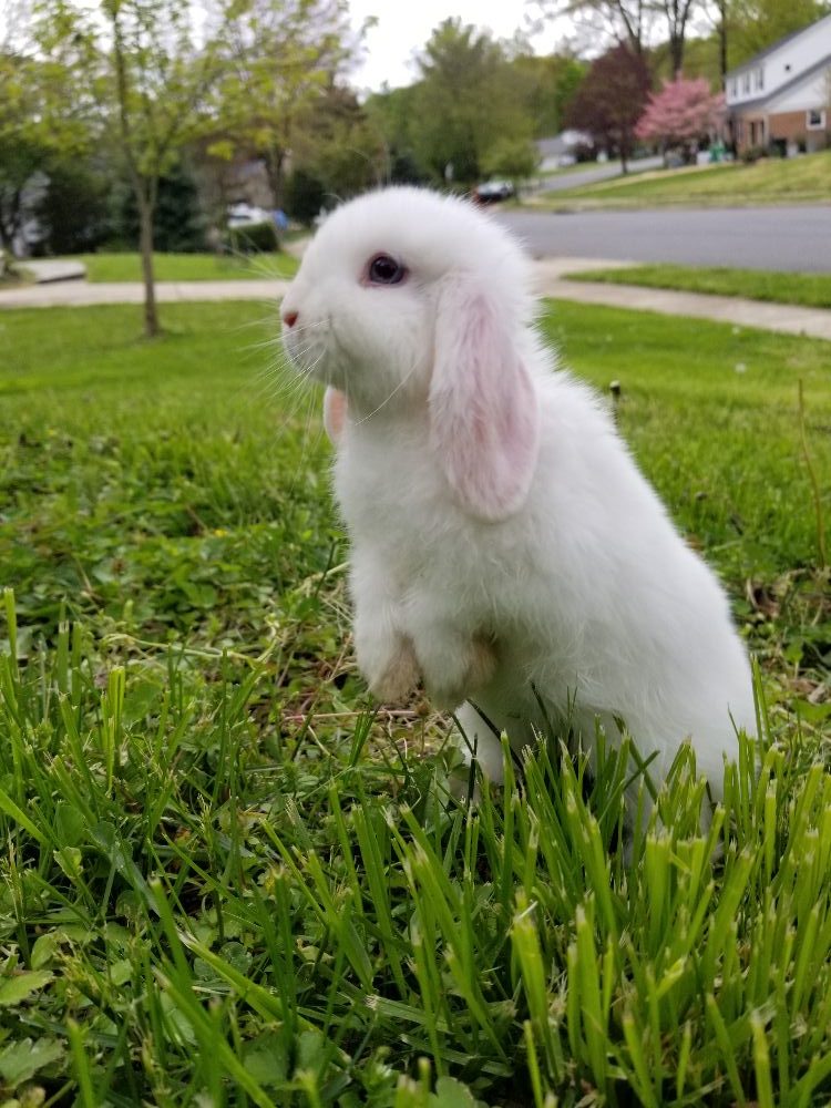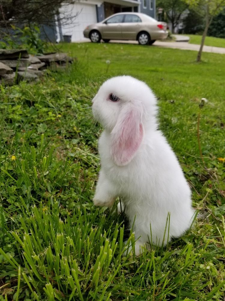 “Spikey” has been getting along fairly well since then, and we’ve only lost him once. We also decided to get a new family pet. Susan had been researching bunnies and we chose a white lop from a seller in Manassas.