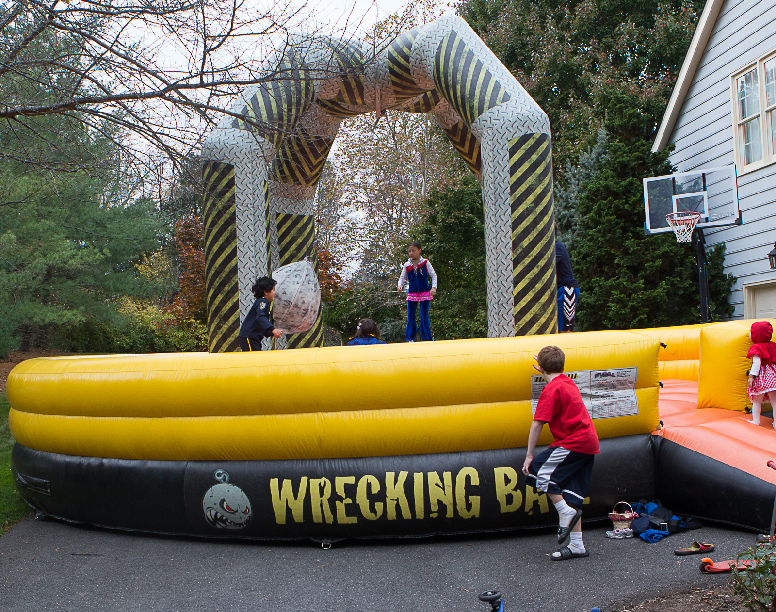 The party in our hood had an awesome wrecking ball blow up bounce house. When all the adults went inside, I tried it out. It was pretty fun 🙂