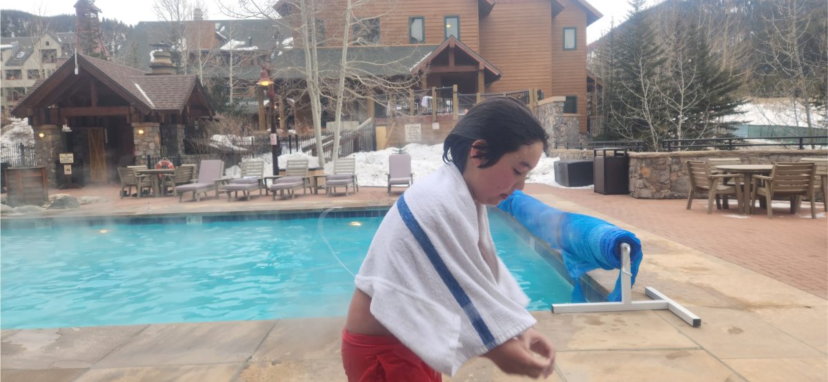 Skylar got some daddy / daughter time by visiting a nearby book store and doing some shopping in the evenings after skiing was over. Parker and I went to the pool each afternoon. I hit just under 60 mph on the EPIC app coming down the last face headed into the village. Super fun!