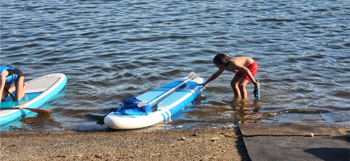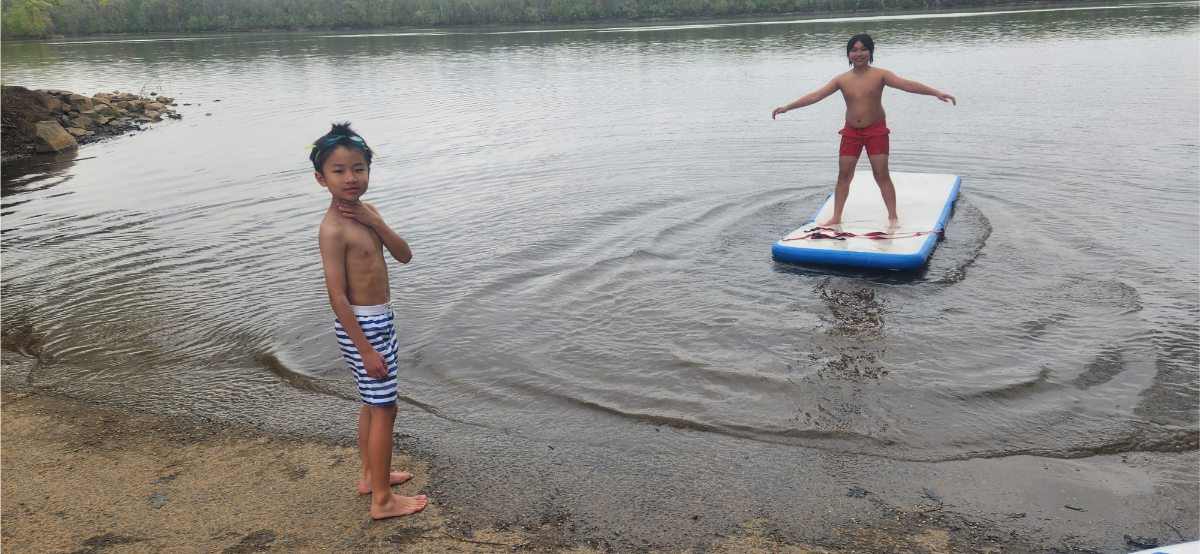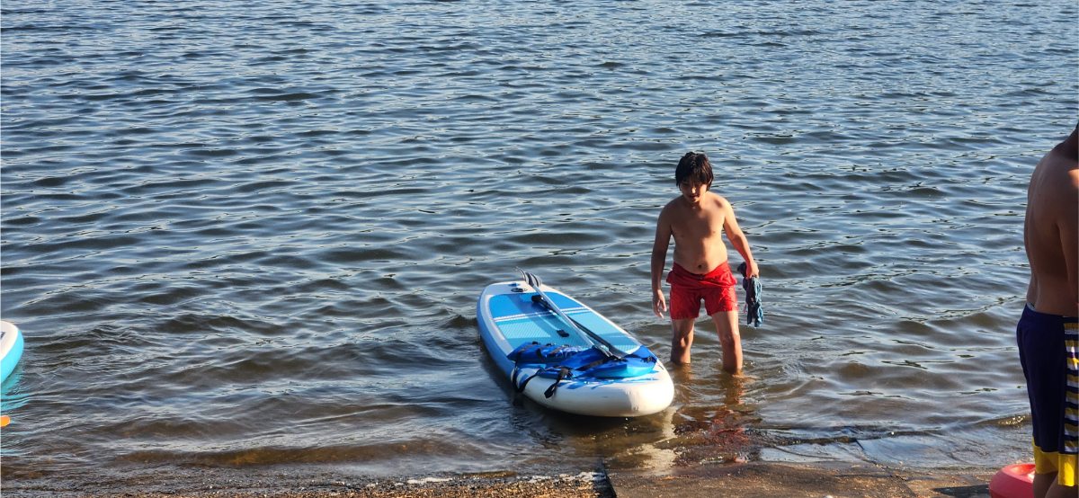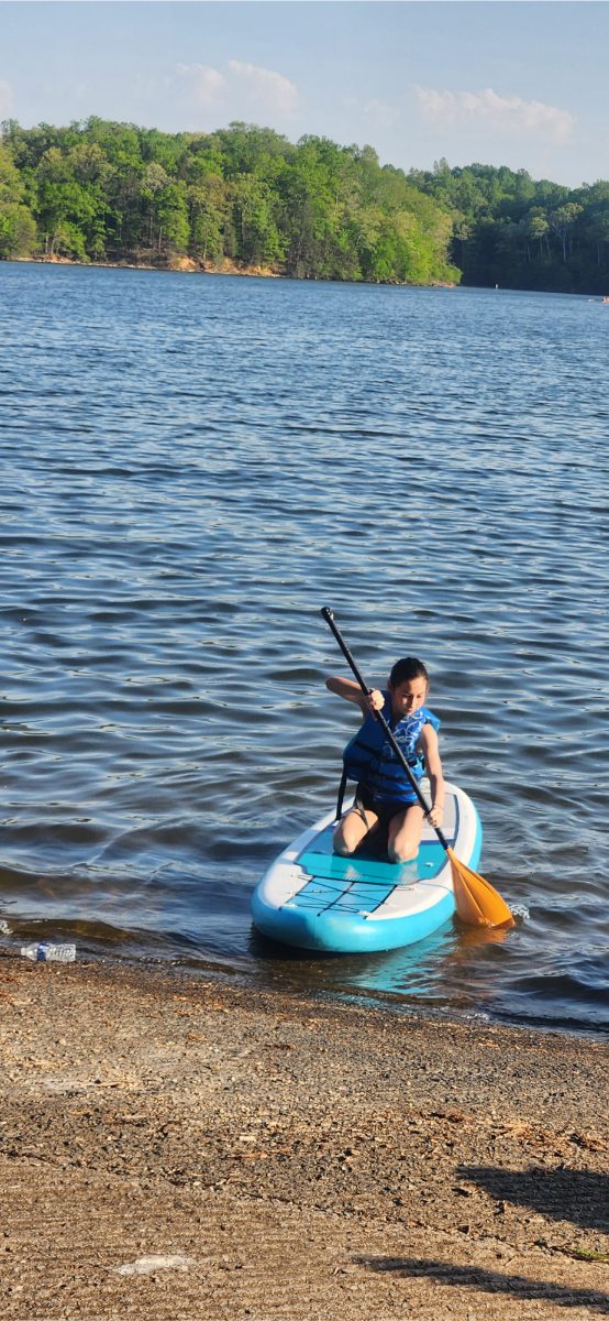 While Skylar attending her gymnastics sessions Parker and I would frequently go to Burke Lake. When the weather was warm enough we’d go out on the water with the paddle boards, which often turned into a wrestling match whereby one or both of us would end up in the water.