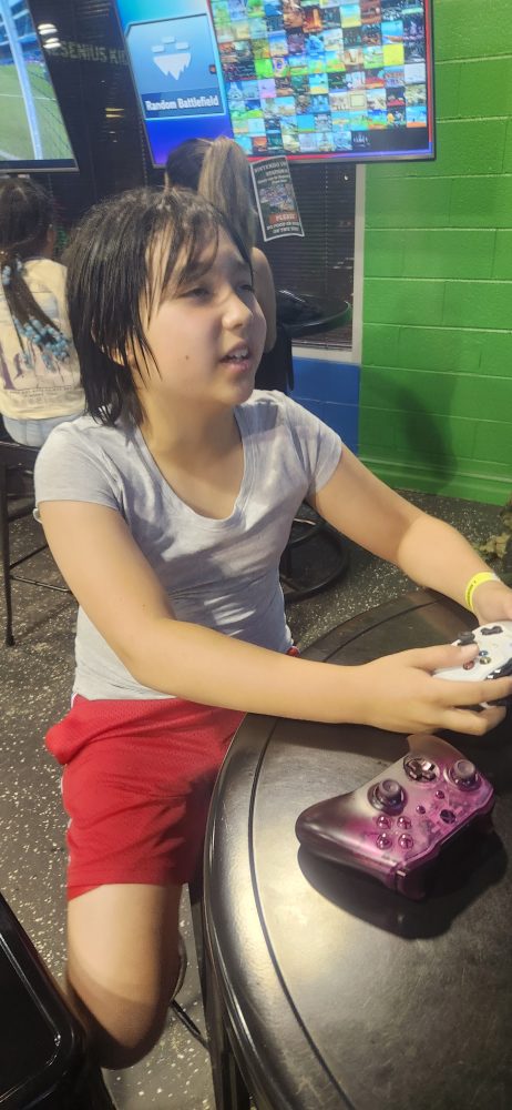 On this particular day we got caught on the water in a rain storm! When the weather was bad we’d go to laser tag – with Parker typically being the last man standing, regardless of who we played against. Parker go his shirt wet, so I’m pretty sure he’s wearing his sisters grey shirt in that video game photo.