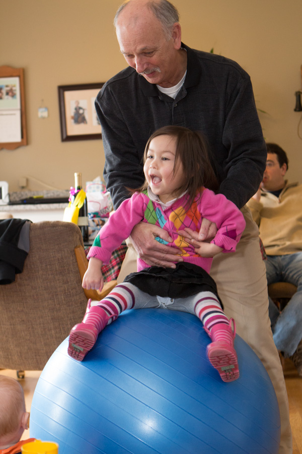 Skylar did some tumbling at a birthday party. We learned some basic physics: vinyl + humidity + friction + clothing + hair = static electricity head!