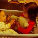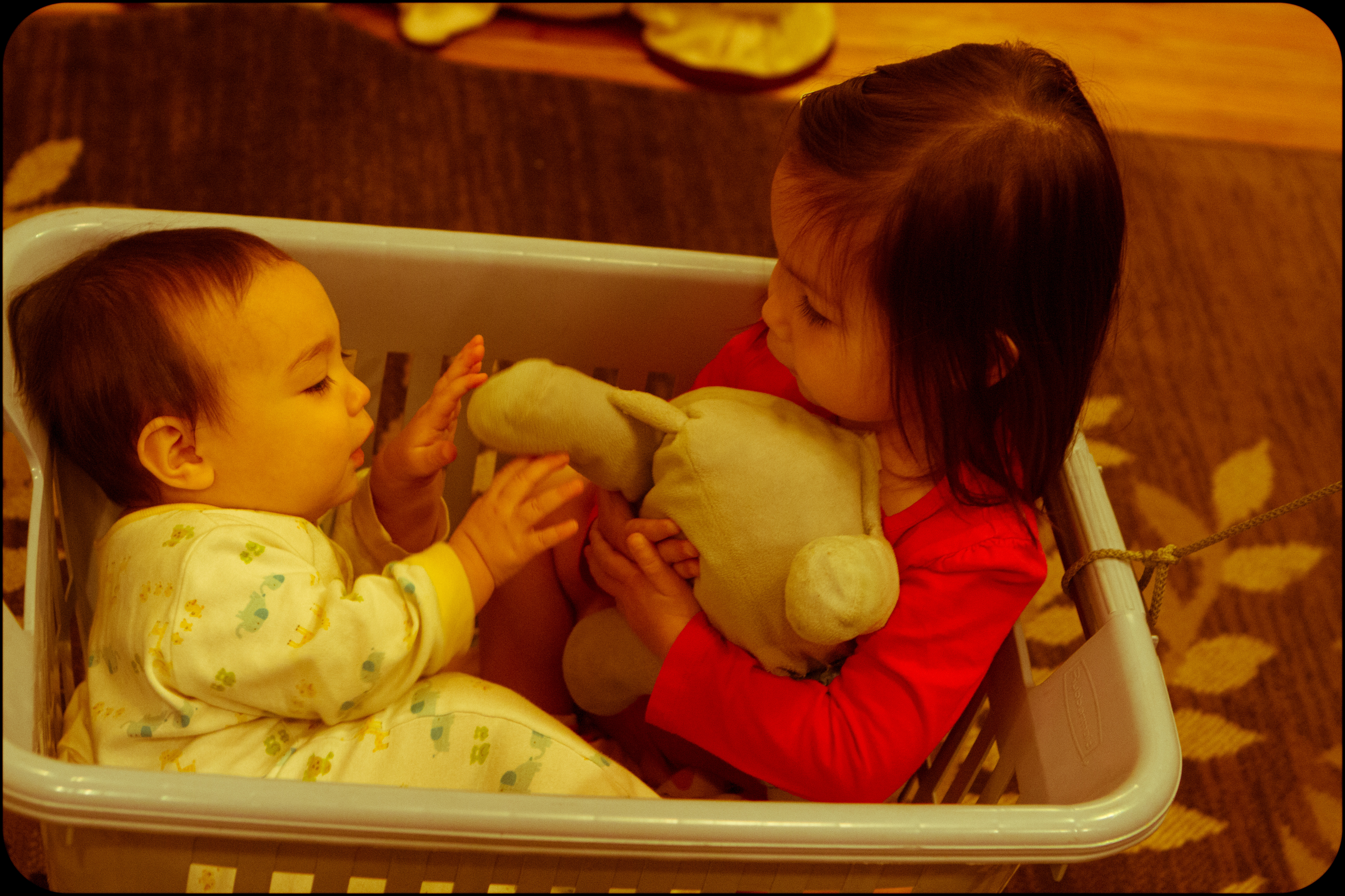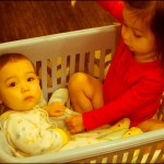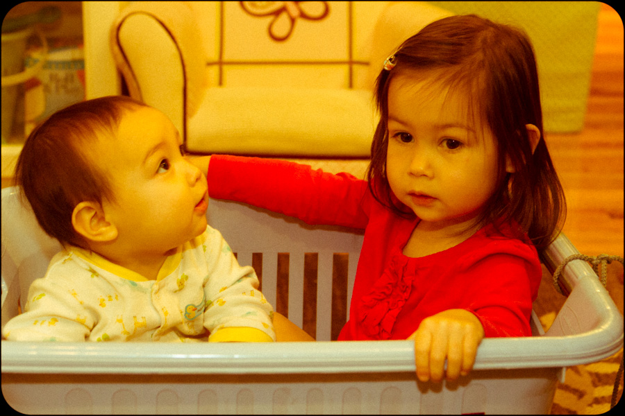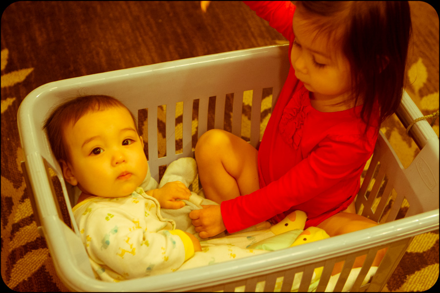Skylar loves trains and somehow that morphed into going on a train ride around the house in the laundry basket. Parker kept trying to climb in so he got to be Skylar’s (the conductor) first passenger.