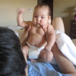 Skylar and daddy do everything together. These pics shows us discussing the detailed life of a ‘digger’ whilst Skylar keeps a vigilant eye out for waves, digging out the hole for the tent, and then packing it with our feet.