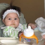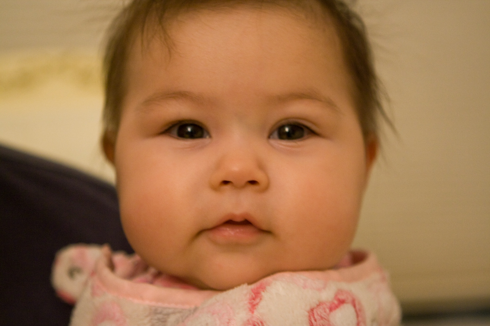 Since the introduction of solids, she is more alert and aware of what’s going on. I’m not sure if it’s related, but she started gaining a sharper awareness right around the time we started with foods. It’s a double edged sword. She’s responsive, giggles, and smiles at you when you do something funny, but on the other hand, she is more sensitive to noise.
