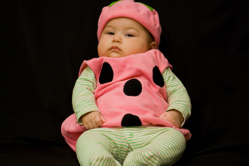 Apparently Skylar’s halloween outfit is really obvious. Guesses anyone? I said it was a watermelon, Susan’s swears it’s a strawberry, my dad said it was a lady bug. Other guesses included pink cow, pink pumpkin, and pink tiger.