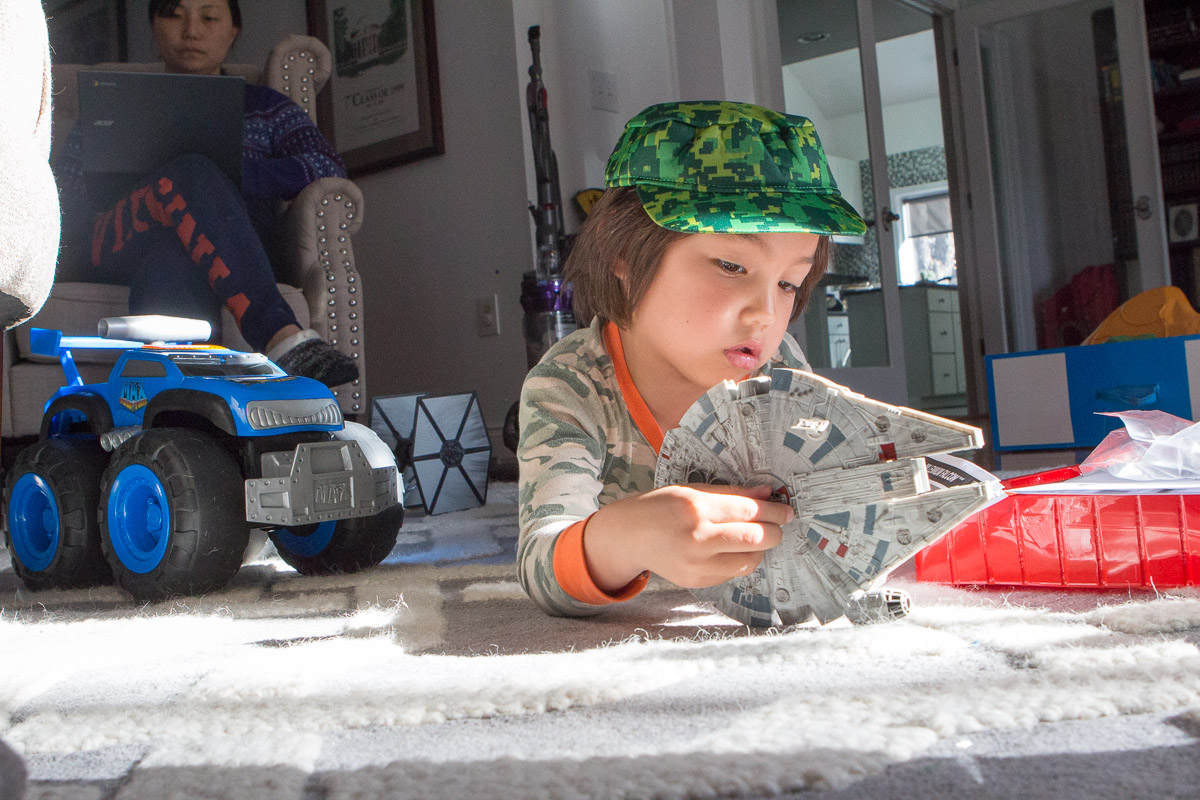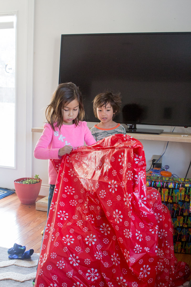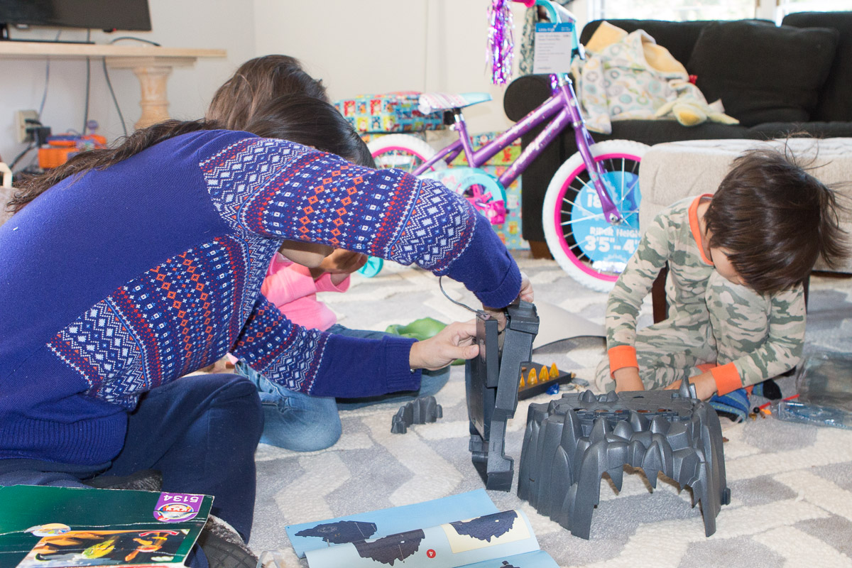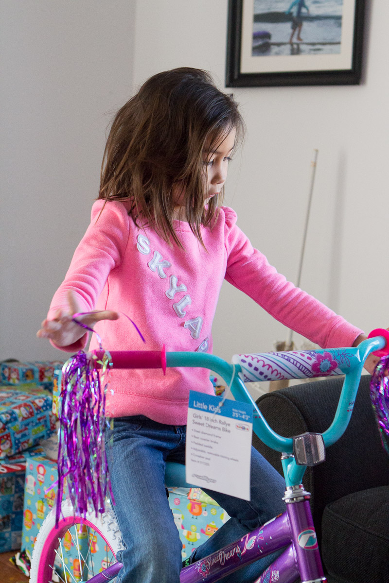 Can’t find stockings? Daddy’s socks will do. Santa brought a new bike. We spent a lot of time assembling! The result of date night at WalMart. Battle plans. -