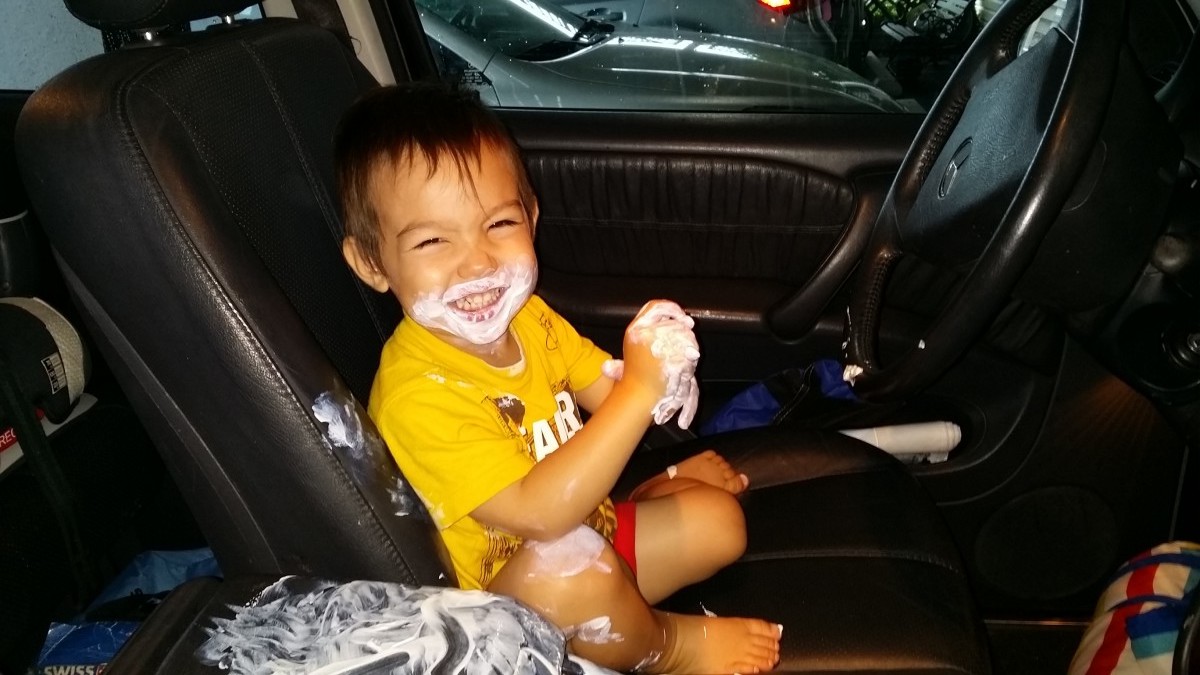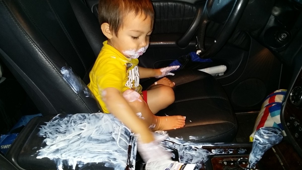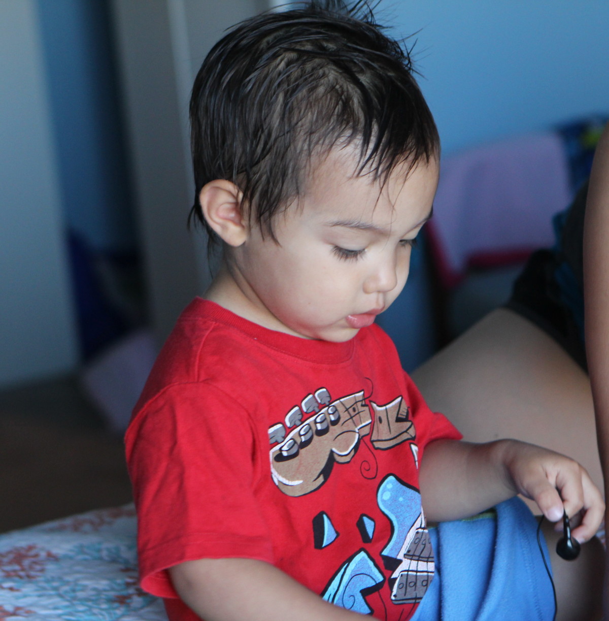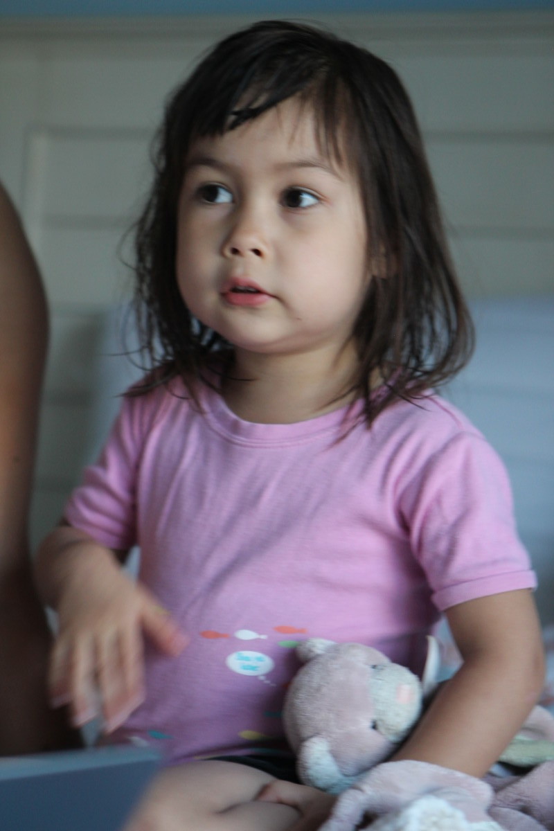 Thumb in the mouth for Skylar. Parker rocked the air guitar.