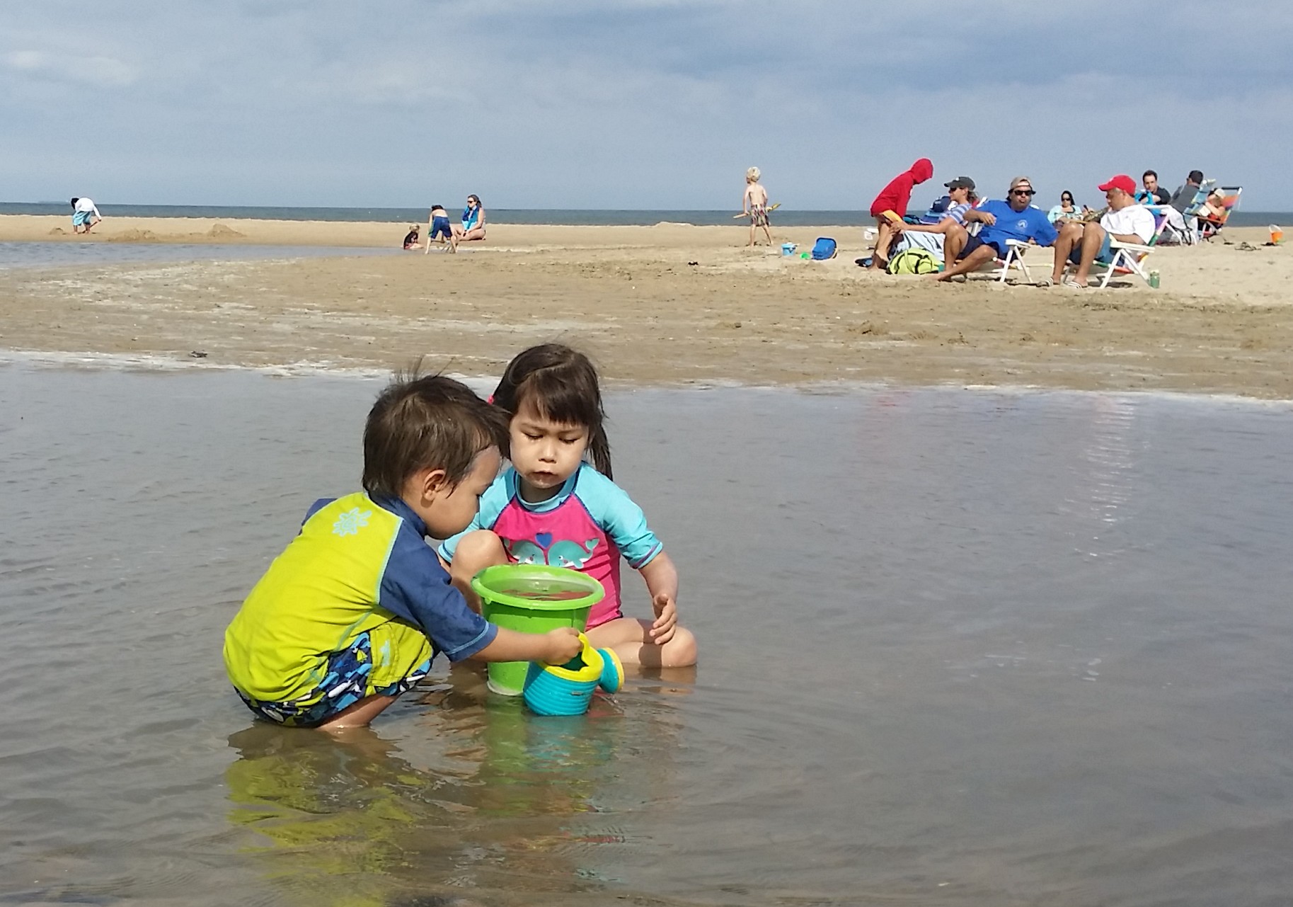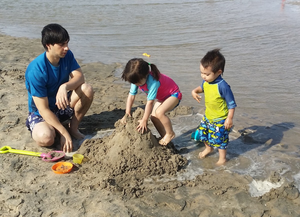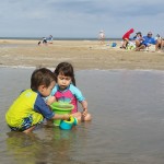 The kids did so much better than last summer at the beach. I had to carry them 1 time down to the water where we watched the waves crash for a minute or two, and then I put them down and it was off to the races chasing the waves back and forth!