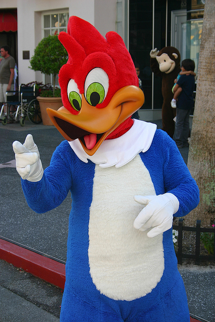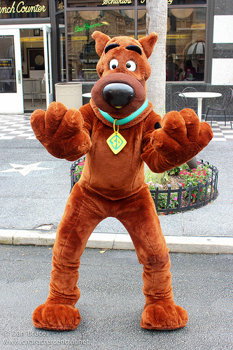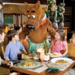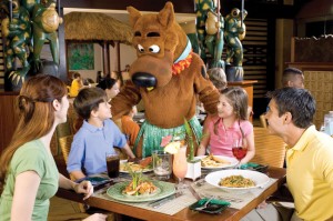 Our first night there we had a character dinner where Woody WoodPecker and Scooby Doo dropped by to say hi. Skylar sprinted for the back of the room while Parker scurried up my leg.