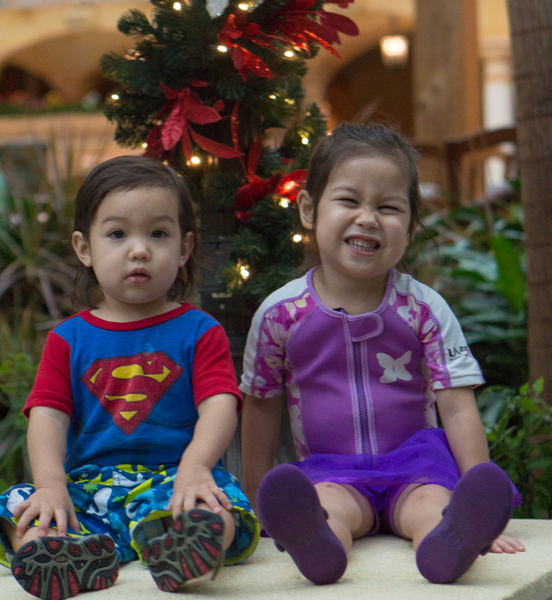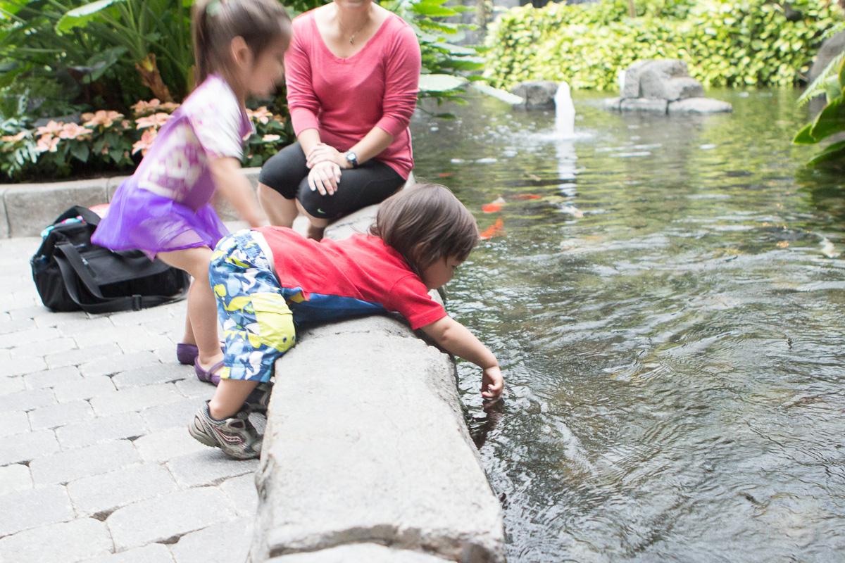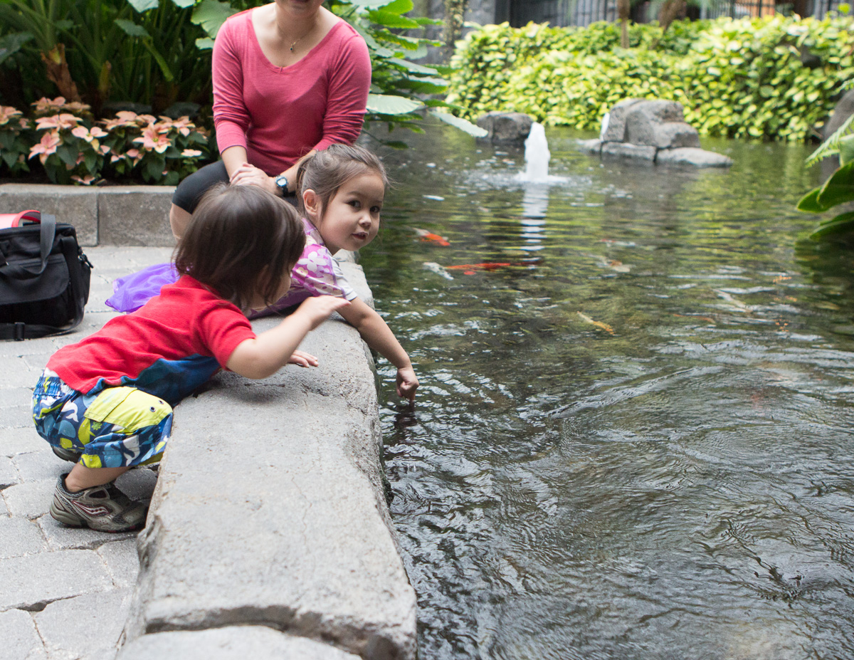 One afternoon we went swimming at the Gaylord hotel – honestly the hotels in Orlando are attractions in their own right. The Gaylord is one of the biggest and most ostentatious with live crocodiles, coy pond that snakes through acres of hotel interior, zero depth swimming pool and kids area with water jets, 1,000 gallon bucket that dumped water ever 10 minutes, multi-story play area with slides, and swings that skimmed the water.