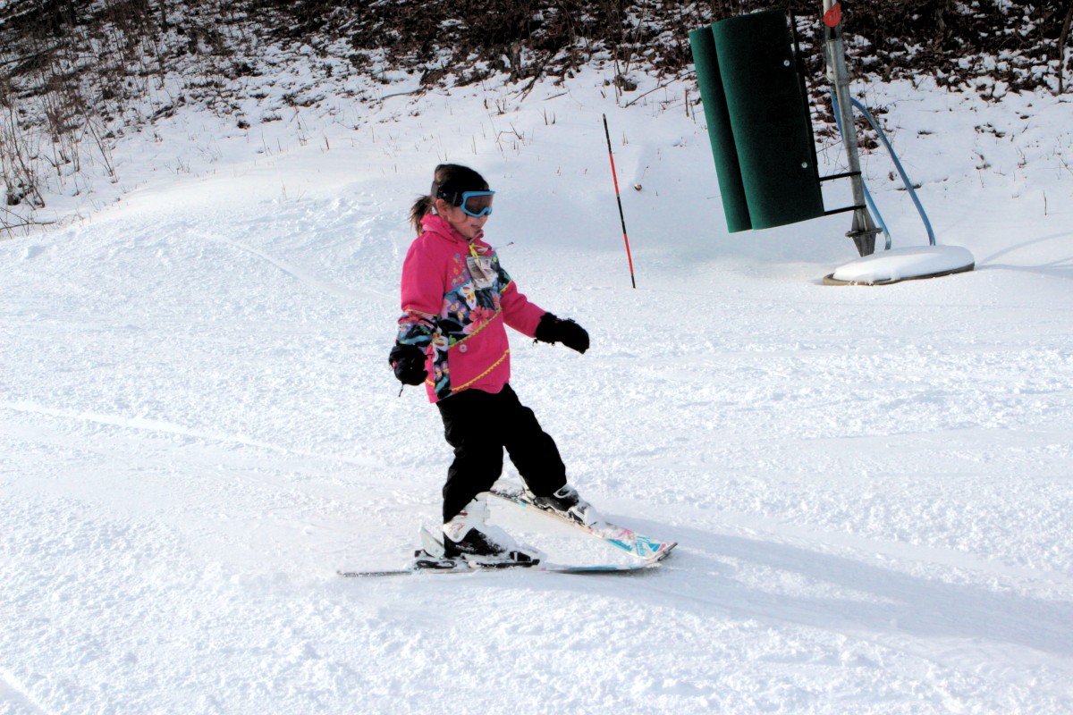 A 10-foot wide by 30-foot long swimming pool was cut out of one of the blue runs for people to try skiing across. That was fun to watch! One out of every 10 people would make it.
